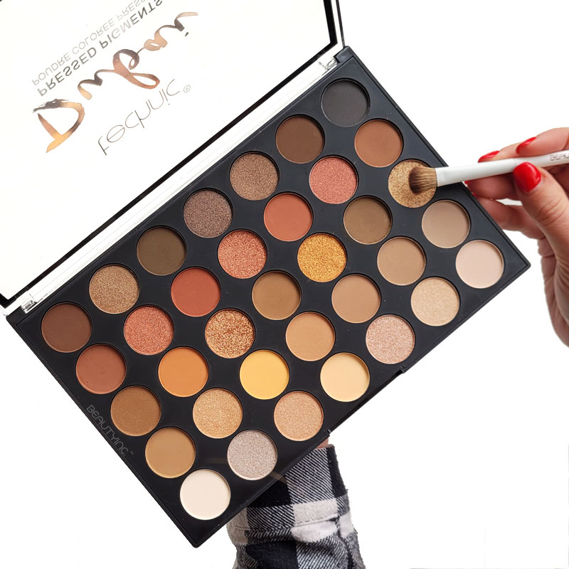 پالت سایه چشم ۳۵ رنگ مدل Dubai تکنیک ترکیبی از رنگهای گرم، طلایی، برنز و خنثی است که برای ایجاد آرایشهای لوکس، درخشان و مجلسی مناسب میباشد. سایههای مات برای ایجاد عمق و رنگهای شایندار و متالیک برای جلوهی برجسته طراحی شدهاند تا ترکیب رنگها نمایی حرفهای داشته باشد.