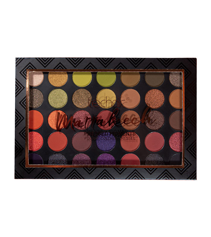 پالت سایه چشم ۳۵ رنگ مدل Marrakech تکنیک شامل طیف وسیعی از رنگهای گرم، خاکی، مسی و تُند است که برای خلق آرایشهای گرم، جذاب و بینقص طراحی شده است. ترکیب سایههای مات و شایندار امکان ساخت گرادینتهای غلیظ و مرحلهای را برای آرایشهای روز، شب و مجلسی فراهم میسازد.